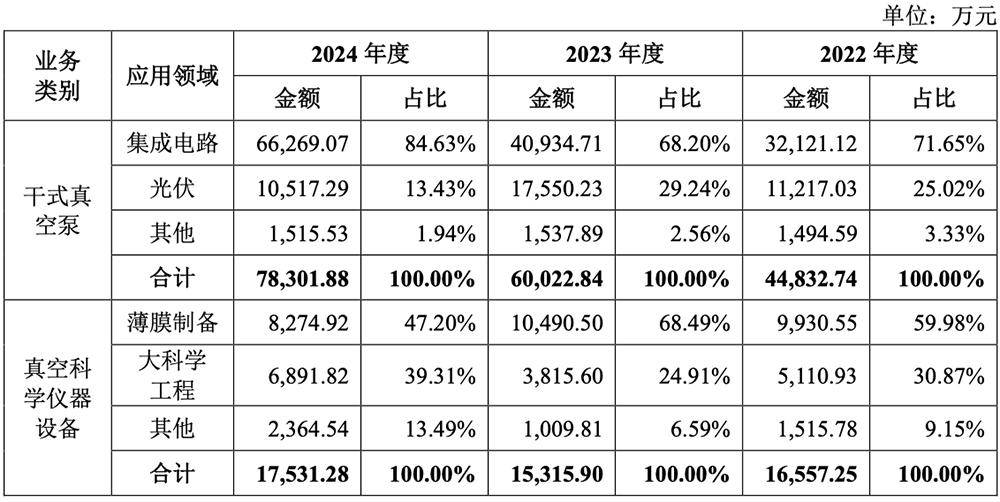 报告期内,中科仪销售的干式真空泵主要应用于集成电路、光伏领域。而国际领先厂商的产品类型丰富,下游应用覆盖半导体、泛半导体、工业制造、生物医药等多个领域。相比之下,中科仪的产品覆盖领域有限,仍需进一步拓展,并面临市场竞争加剧的风险。