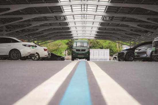 4月14日下午,在嘉兴市区一家电能充站(南湖文昌路站)内,一辆辆新能源车停靠在快充车位上。该光充站利用光伏发电储能,目前共有88个快充车位,为周边居民提供便捷、绿色的充电服务。(盛佳淳)