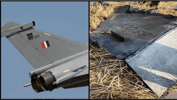 网传飞机残骸照片(右),以及此前印度空军序列号为"BS 001"的阵风战机照片。