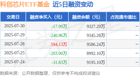 证券之星消息,7月30日,科创芯片ETF基金(588290)融资买入795.14万元,融资偿还813.13万元,融资净卖出17.99万元,融资余额9327.29万元。