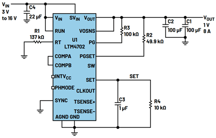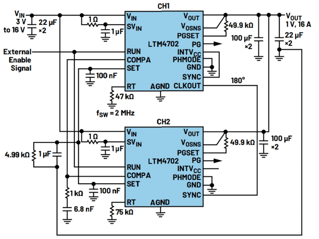 图4. LTM4702两相、1 V、16 A降压型电源。