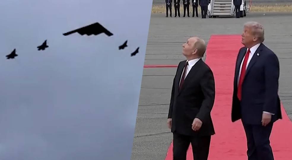 此次会谈地点在美国阿拉斯加州的埃尔门多夫-理查森联合基地,美方特意事前安排了多架F-22战斗机停放在该基地,并在普京到达后安排了一架B-2轰炸机在四架F-35战斗机的护卫下低空通场。《纽约时报》将之解读为“为下方光鲜亮丽的会谈增添了一丝冷酷的现实气息”。