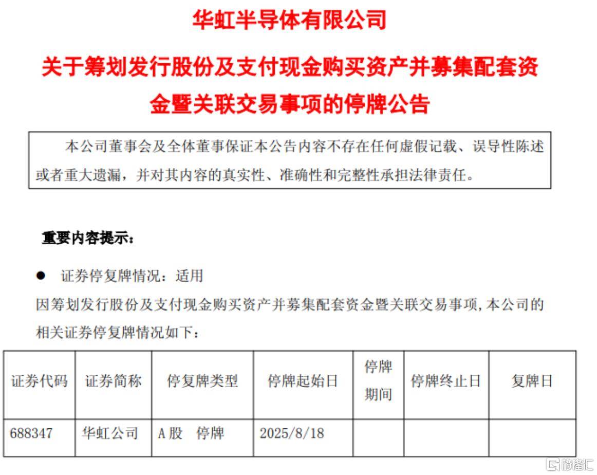 今日晚间,A股1300亿芯片巨头华虹公司发布公告。