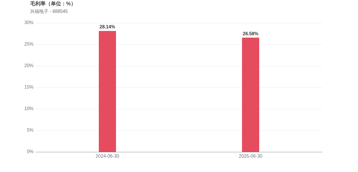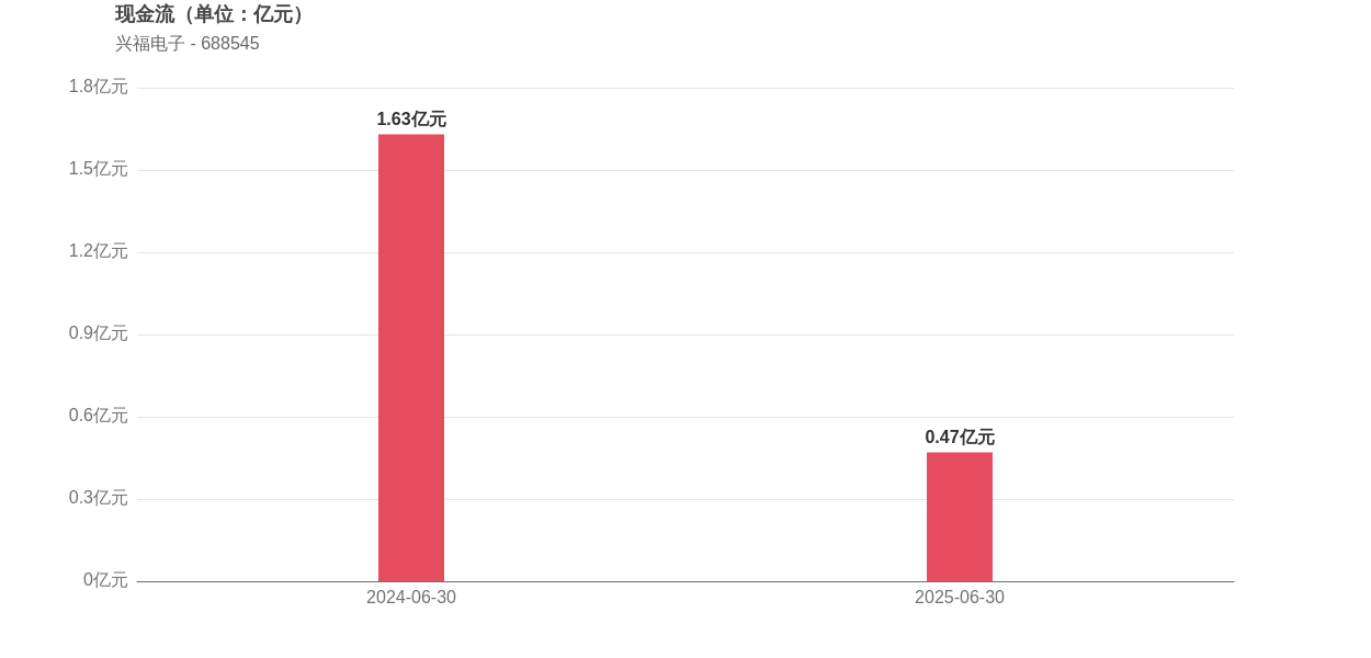 在经营稳健性方面,兴福电子面临现金流收紧的挑战,存货周转天数为63.53天,较上年同期有所改善。经营活动产生的现金流净额为0.47亿元,相比2024年同期的1.63亿元大幅下滑。此外,2025年上半年的资产负债率为29.90%,同比下降9.15个百分点,这意味着公司债务负担有所减轻,财务结构趋于稳健。