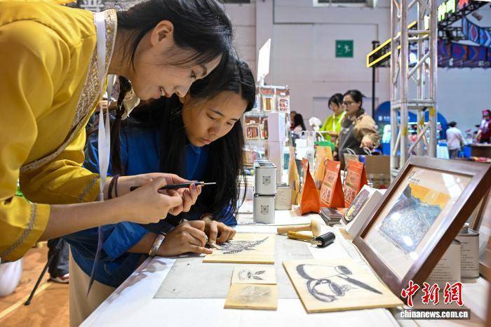 9月17日,观众体验普洱绝版木刻。中新社记者 李嘉娴 摄