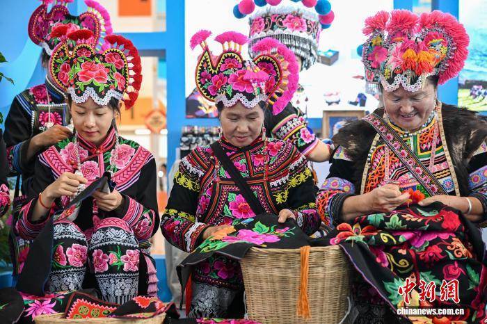 9月17日,参展商展示彝绣。中新社记者 李嘉娴 摄