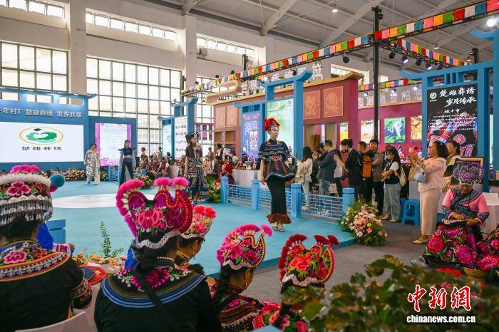 9月17日,模特身着彝绣服饰走秀展民族风采。中新社记者 李嘉娴 摄