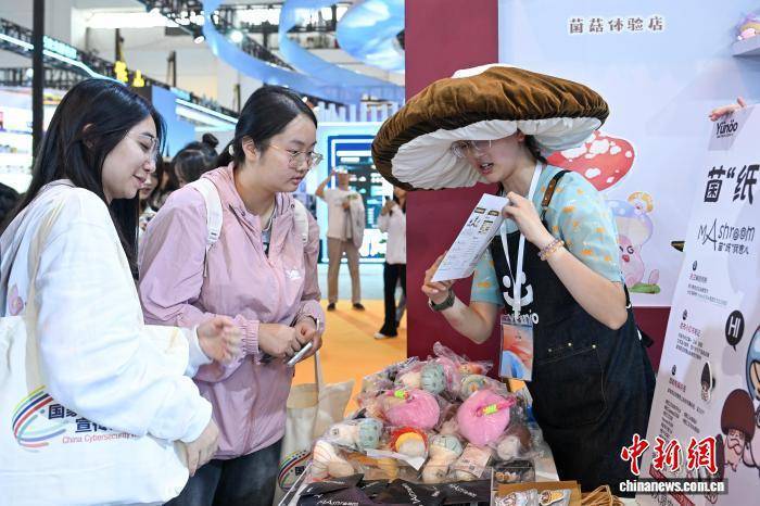 9月17日,参展商打扮成菌菇模样向观众介绍菌菇主题文创产品。中新社记者 李嘉娴 摄