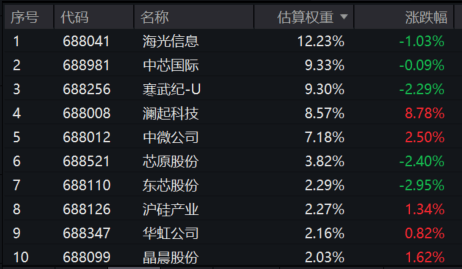 【科创芯片50ETF(588750)标的指数前十大成分股】