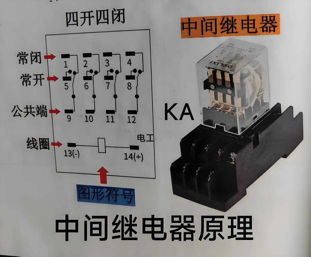 中间继电器本质上是一种电磁式继电器,其工作原理基于电磁感应。当线圈通电时,会产生磁场,吸引衔铁动作,从而使触点闭合或断开,实现电路的通断控制。