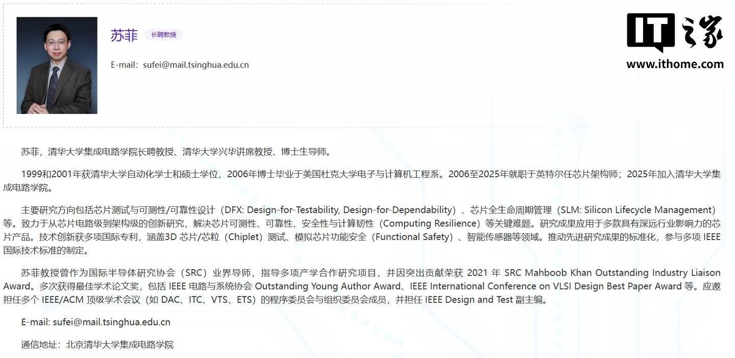 IT之家 9 月 23 日消息,清华大学集成电路学院官网更新了教研人员简历,原英特尔任芯片架构师苏菲上任清华大学集成电路学院长聘教授、清华大学兴华讲席教授、博士生导师。