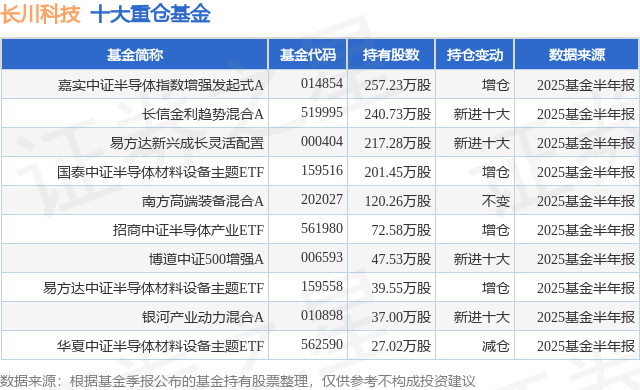 重仓长川科技的前十大公募基金请见下表: