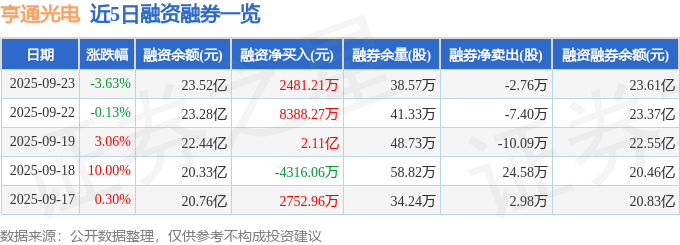 亨通光电融资融券信息显示,融资方面,当日融资买入5.07亿元,融资偿还4.82亿元,融资净买入2481.21万元,连续3日净买入累计3.2亿元。融券方面,融券卖出5.47万股,融券偿还8.23万股,融券余量38.57万股,融券余额850.16万元。融资融券余额23.61亿元。