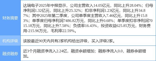 今日达瑞电子(300976)涨5.01%,收盘报71.51元。