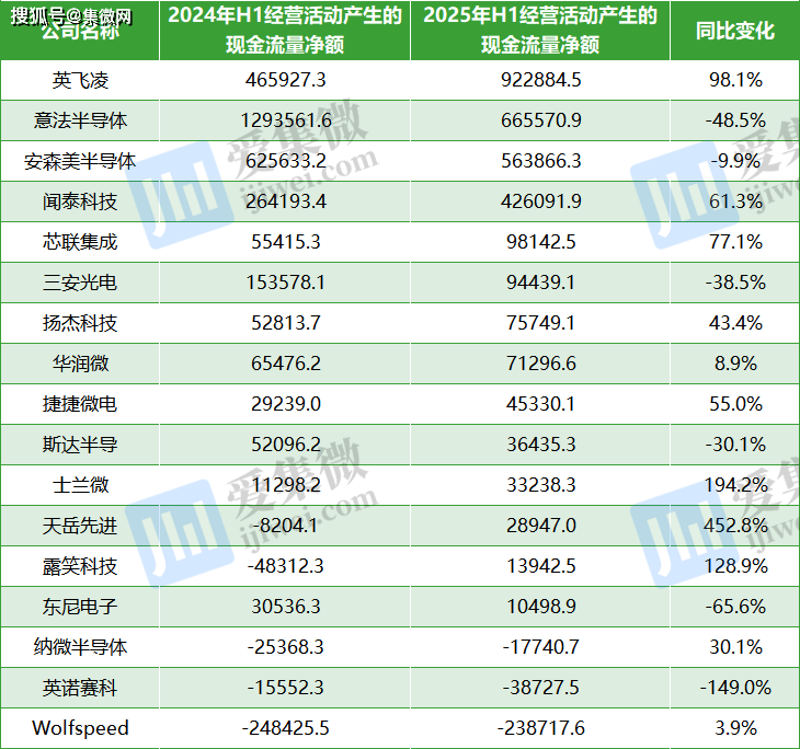 分析发现,2025年中报现金流已清晰勾勒出“中国产能落地、需求兑现”与“欧美去库存、价格厮杀”的两条曲线。A股、港股企业只要产品真正进入汽车、工业或海外功率器件供应链,现金回流即显著提速;反之,业务仍停留在传统环节或尚未放量的公司,现金流改善有限。美股方面,除英飞凌外,普遍需等待库存出清、价格企稳后才有现金修复空间,Wolfspeed的破产更提示现金流持续为负的企业将面临生存考验。