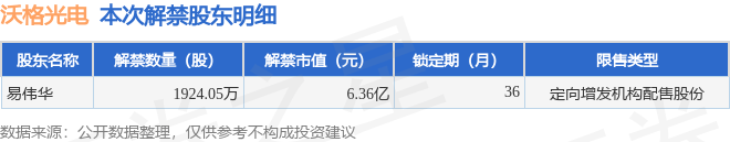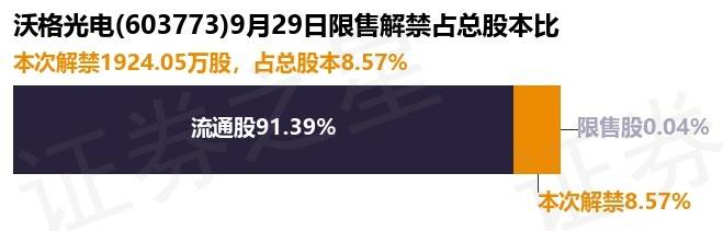 证券之星消息,根据市场公开信息整理,沃格光电(603773)于9月29日将有1924.05万股限售股份解禁,为公司定向增发机构配售股份,占公司总股本8.57%。(本次数据根据历史公告整理得出,实际情况以上市公司最新公告为准)最近一年内,该股累计解禁5.85万股,占总股本的0.03%。本次解禁后,公司还有9.62万股限售股份,占总股本0.04%。具体如下图所示: