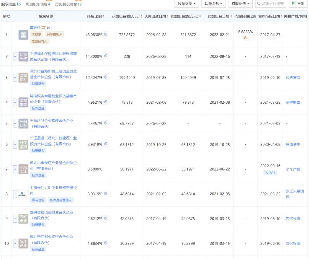 从股权结构来看,荣湃半导体董事长董志伟通过直接和间接的方式持有该公司54.3137%股权,为公司实际控制人。此外,湖北小米长江产业基金合伙企业(有限合伙)也持有荣湃半导体3.5%的股权,豪威集团参与的义乌韦豪创芯一期股权投资合伙企业(有限合伙)持有荣湃半导体1.4250%的股权。