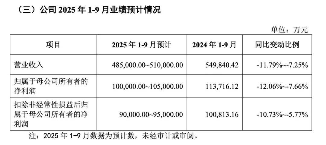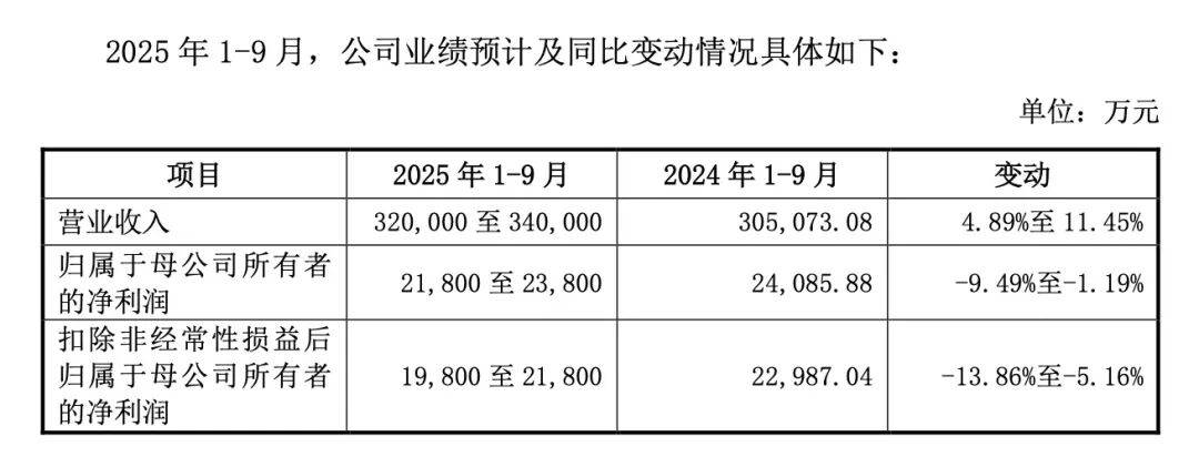 马可波罗招股书称,预计公司2025年前三季度实现净利润10亿元至10.5亿元,同比变动-12.06%至-7.66%。