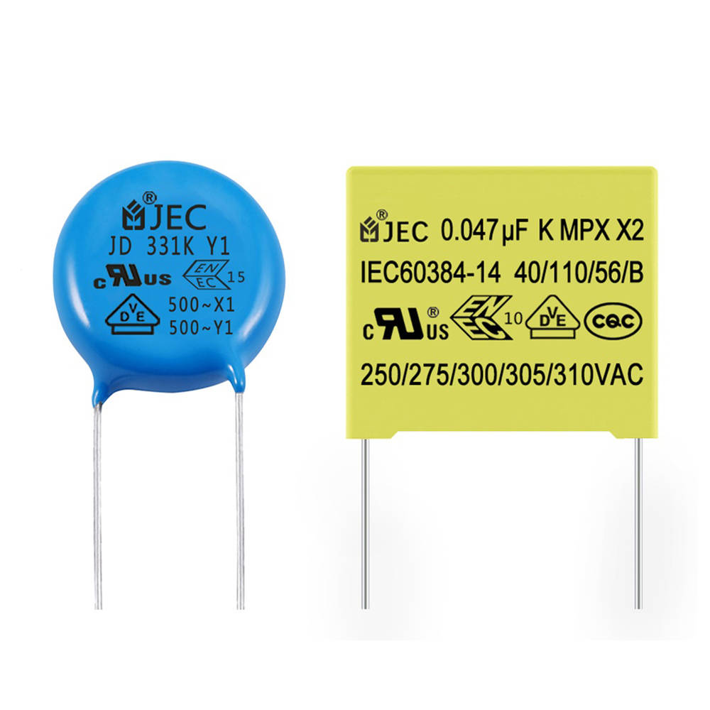 安规电容,是一种在电容器失效后,不会导致电击,不危及人身安危的电容器,主要包括X电容和Y电容两大类,分别用于抑制差模干扰和共模干扰。
