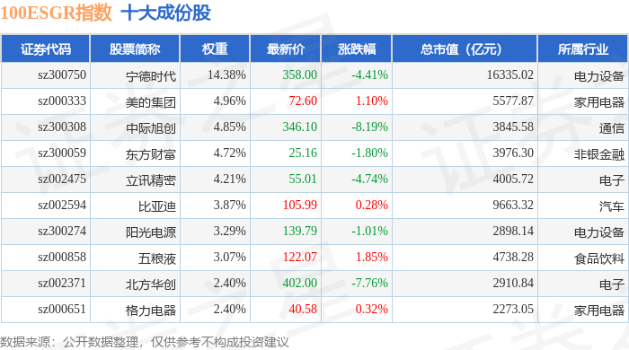 100ESGR(470027)指数十大成份股详情如下: