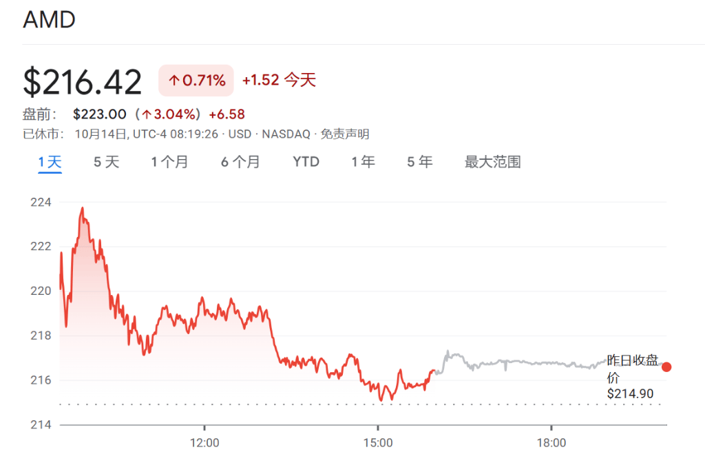 消息公布后,AMD美股盘前涨幅扩大,现扩大至3%。