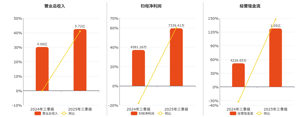 公司营业总收入为5.72亿元。归母净利润为7339.41万元。经营活动现金净流入为1.05亿元。