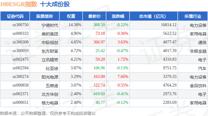 100ESGR(470027)指数十大成份股详情如下: