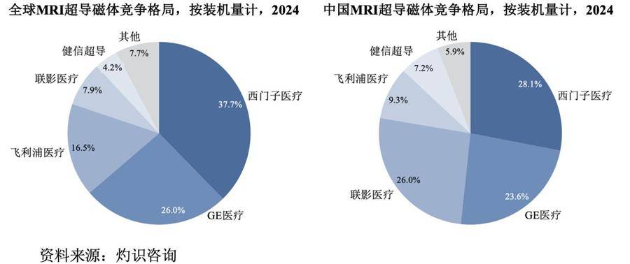 根据灼识咨询数据,以装机量口径统计,2024年全球超导磁体前五四名厂商依次为西门子医疗、GE医疗、飞利浦医疗和联影医疗,健信超导排名第五,在国内企业中仅次于联影医疗。