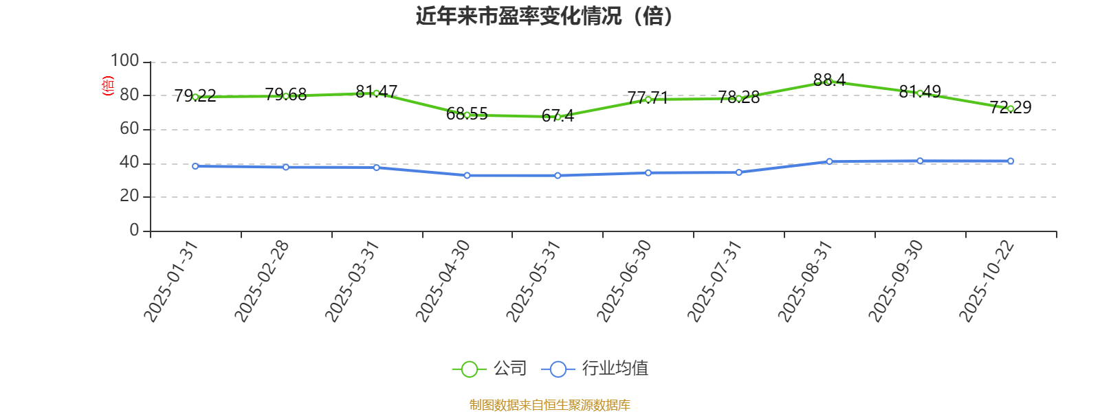 以10月22日收盘价计算,钧崴电子目前市盈率(TTM)约为72.29倍,市净率(LF)约5.62倍,市销率(TTM)约12.44倍。