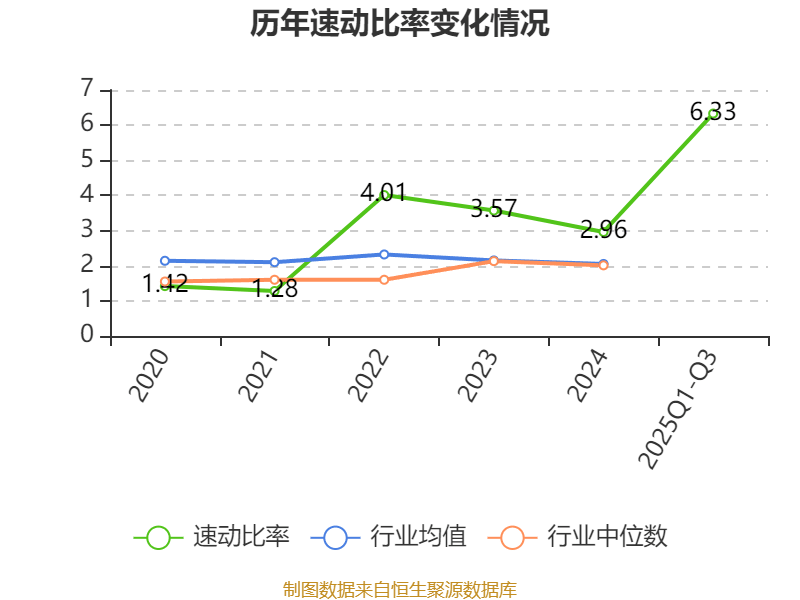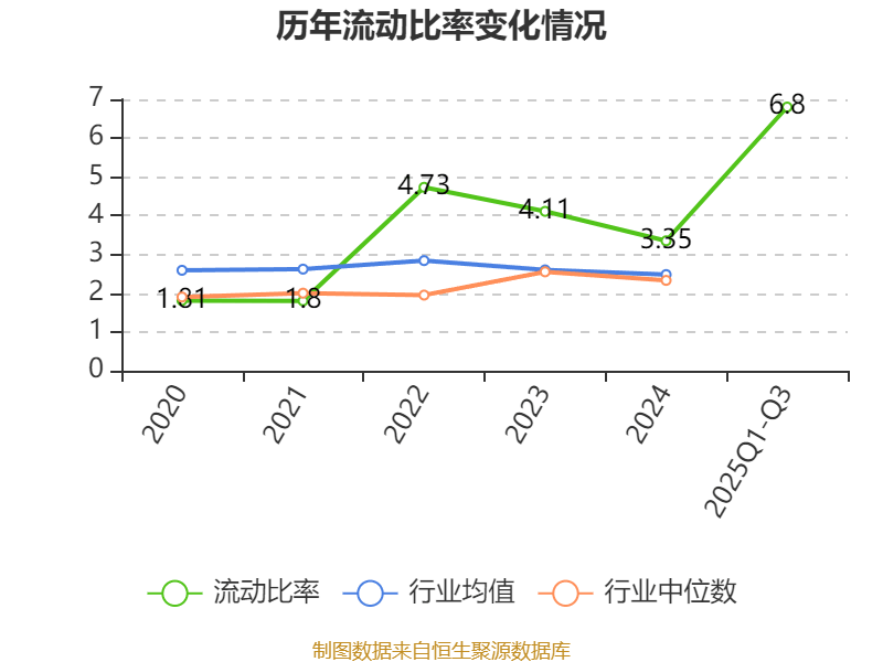 2025年前三季度,公司流动比率为6.8,速动比率为6.33。