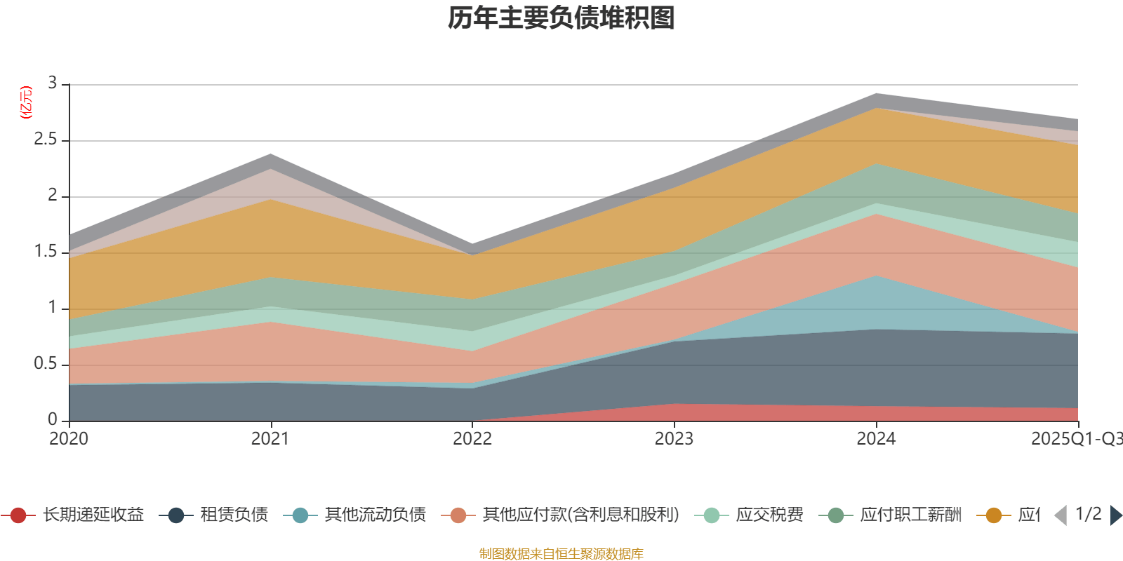 负债重大变化方面,截至2025年三季度末,公司其他流动负债较上年末减少96.9%,占公司总资产比重下降3.73个百分点;租赁负债较上年末减少3.14%,占公司总资产比重下降2.01个百分点;应付职工薪酬较上年末减少27.7%,占公司总资产比重下降1.49个百分点;其他应付款(含利息和股利)较上年末增加4.2%,占公司总资产比重下降1.41个百分点。