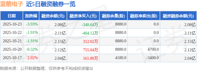 蓝箭电子融资融券信息显示,融资方面,当日融资买入5128.29万元,融资偿还5468.93万元,融资净偿还340.64万元。融券方面,融券卖出0.0股,融券偿还0.0股,融券余量8880.0股,融券余额20.2万元。融资融券余额2.08亿元。