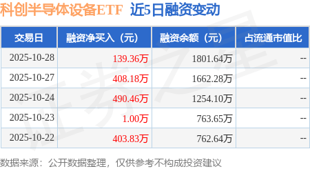 证券之星消息,10月28日,科创半导体设备ETF(588710)融资买入1247.18万元,融资偿还1107.83万元,融资净买入139.36万元,融资余额1801.64万元,近3个交易日已连续净买入累计1037.99万元。