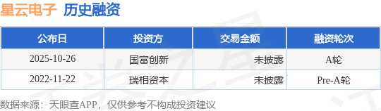 证券之星消息,根据天眼查APP于10月26日公布的信息整理,桂林星云电子科技有限公司A轮融资,融资额未披露,参与投资的机构包括国富创新。
