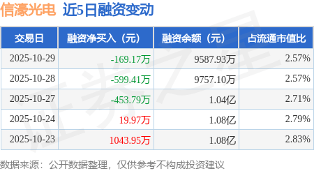 证券之星消息,10月29日,信濠光电(301051)融资买入490.67万元,融资偿还659.84万元,融资净卖出169.17万元,融资余额9587.93万元。