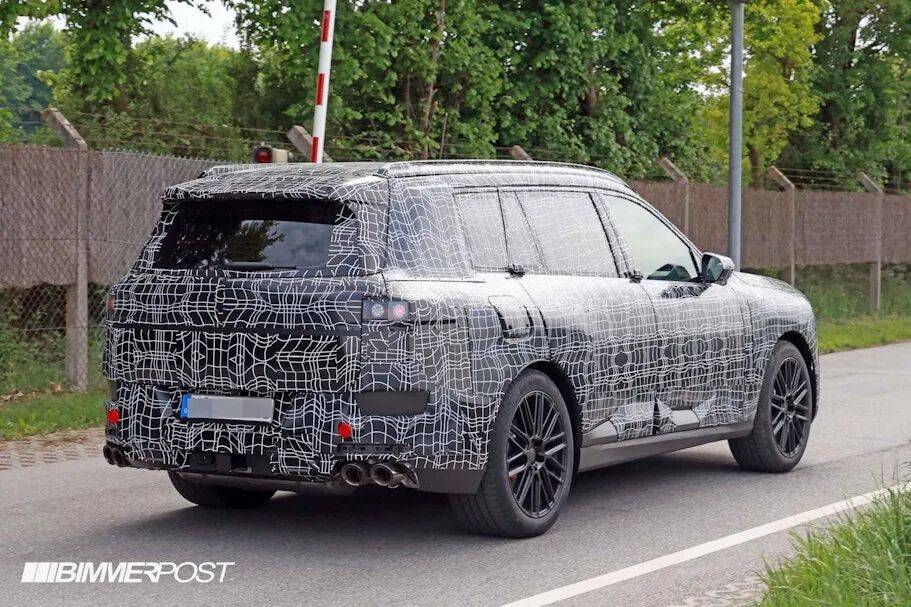 来看看尾部,渲染图里的车型是下一代X7 M70 xDrive,配备了双边共四出的排气,这款车是M Performance车型,排气多、排气大也很正常。如果是X7普通车型,估计也就是单边的排气了。