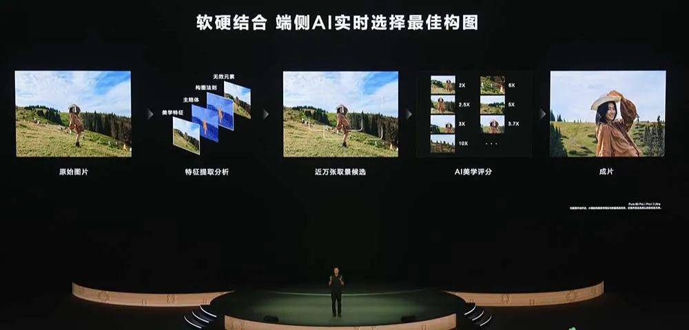 ▲6月20日华为开发者大会(HDC)上展示的最新手机端侧AI功能,AI可以帮助用户在拍照时进行辅助构图