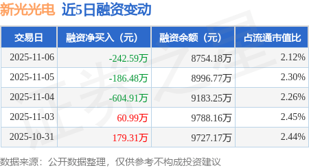 证券之星消息,11月6日,新光光电(688011)融资买入564.74万元,融资偿还807.33万元,融资净卖出242.59万元,融资余额8754.18万元。