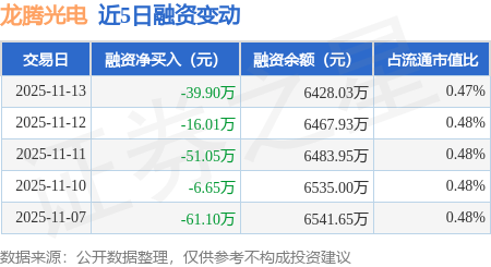 证券之星消息,11月13日,龙腾光电(688055)融资买入168.88万元,融资偿还208.78万元,融资净卖出39.9万元,融资余额6428.03万元。
