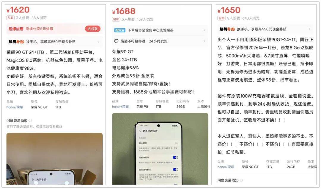 最后是价格,24G+1TB全新首销价是3699元,如今二手砍一大半,我找到最低是1620元,再低就有问题,我看还有人开1550元的收购价呢。另外要问清楚带不带100W快充,别被卖家截留了。