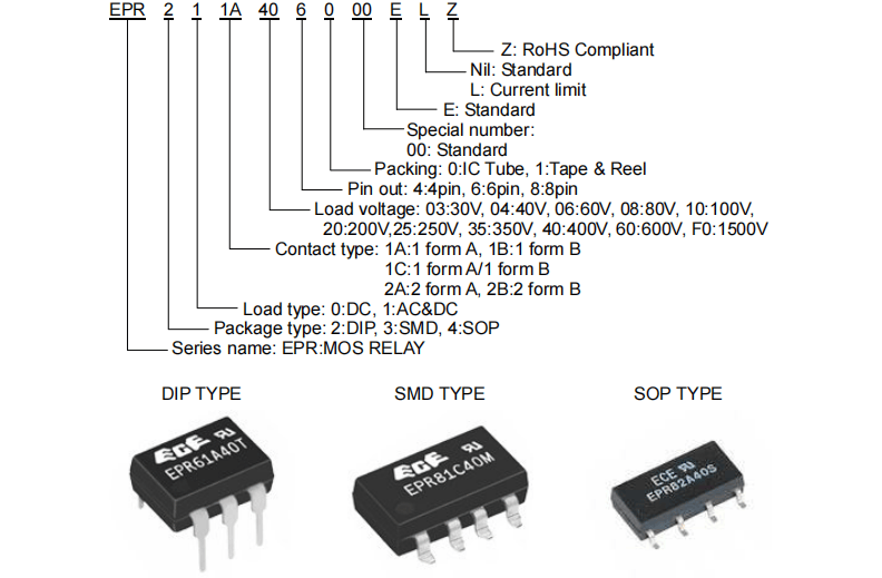 传统继电器封装类型单一,部分需人工焊接,适配性差;EPR 系列提供DIP、SMD、SOP 三大封装类型,支持机器自动插入或波峰焊工艺,无论是小型化设备(SMD 封装)还是传统工业设备(DIP 封装),都能无缝适配,大幅提升生产线效率