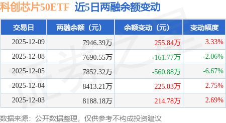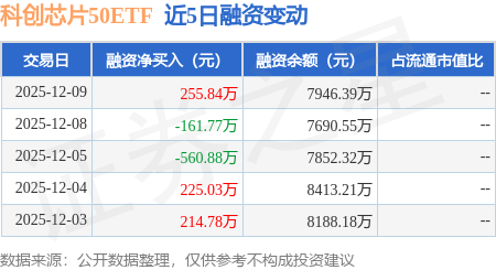 证券之星消息,12月9日,科创芯片50ETF(588750)融资买入844.5万元,融资偿还588.65万元,融资净买入255.84万元,融资余额7946.39万元。