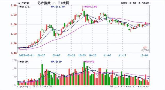 12月10日上午,芯片板块整体偏弱,芯片ETF(159995)盘中跌约1.1%,成分股澜起科技跌3.27%,海光信息跌2.69%,中微公司跌2.23%。