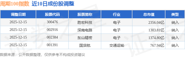 近10日内周期100(399402)指数成份股做了调整,新纳入了4只股票。