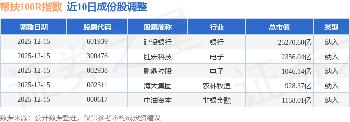 近10日内帮扶100R(480065)指数成份股做了调整,新纳入了5只股票。