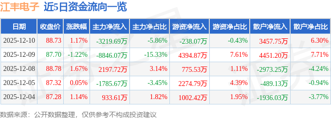证券之星消息,截至2025年12月10日收盘,江丰电子(300666)报收于88.73元,上涨1.17%,换手率2.82%,成交量6.24万手,成交额5.49亿元。