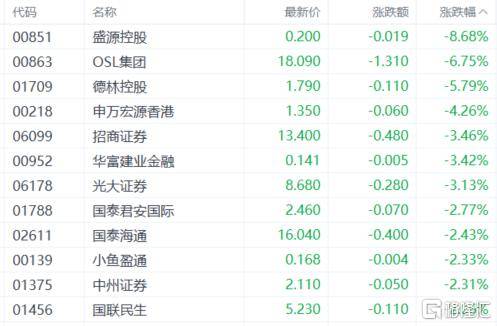 证券板块低迷,招商证券、光大证券跌超3%,国泰君安国际、国泰海通、中州证券等跟跌。