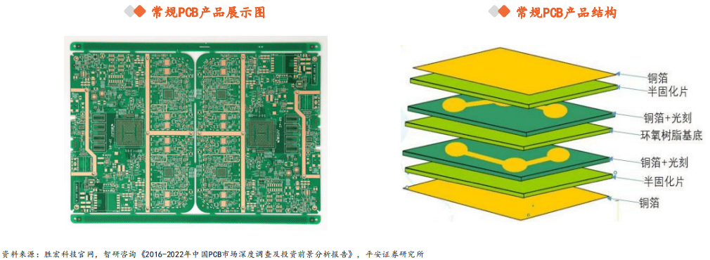 PCB作为“电子产品之母”,是电子设备电路连接的核心部件,广泛应用于通讯、消费电子、汽车电子等领域。按产品结构可分为刚性板、挠性板等,制造工艺主要有减成法、全加成法和半加成法。