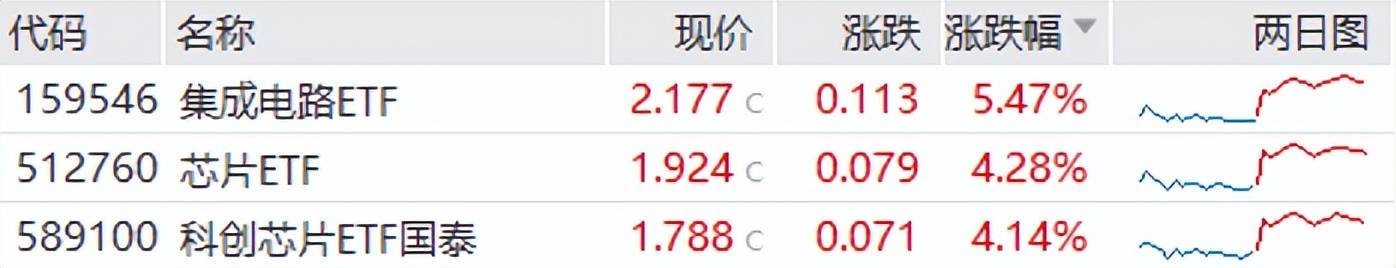 1月21日,半导体板块活跃,CPU受到市场追捧。集成电路ETF(159546)大涨5.47%,芯片ETF(512760)大涨4.28%,科创芯片ETF(589100)大涨4.14%。