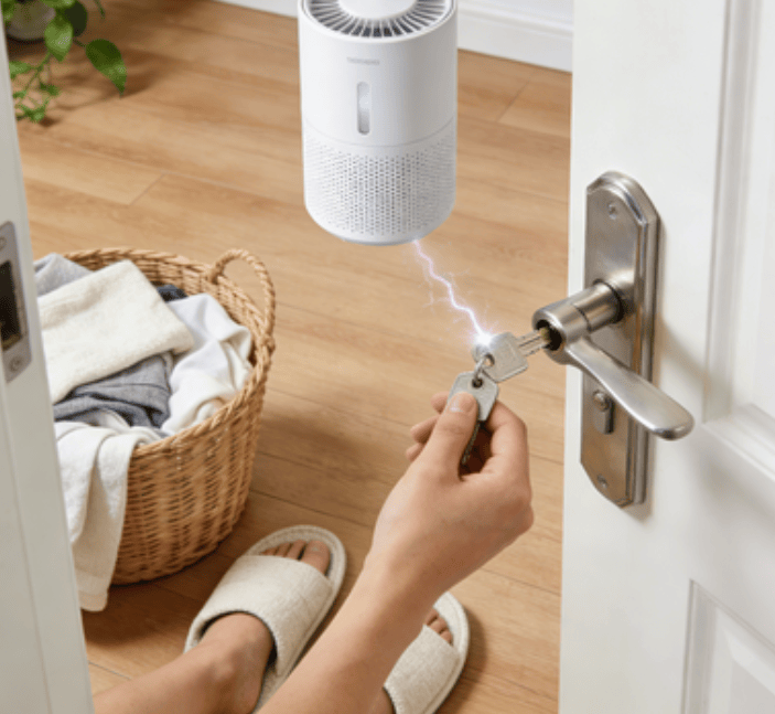 秋冬皮肤油脂少、水分低,本身导电性变差,电荷更难从人体导走,一碰金属门把手、车门、别人,就瞬间放电。
